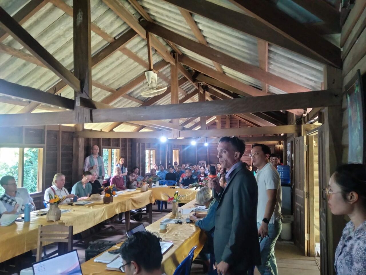 Le 15 octobre 2025, l’Association Écotouristique de Konglor-Natane (AEKN) a eu l’honneur d’accueillir dans ses locaux une délégation de l’Union européenne, accompagnée du ministère laotien des Finances, du ministère laotien des Affaires étrangères, ainsi que de représentants de plusieurs pays européens — France, Allemagne, Irlande, Hongrie, Luxembourg et Suisse.
